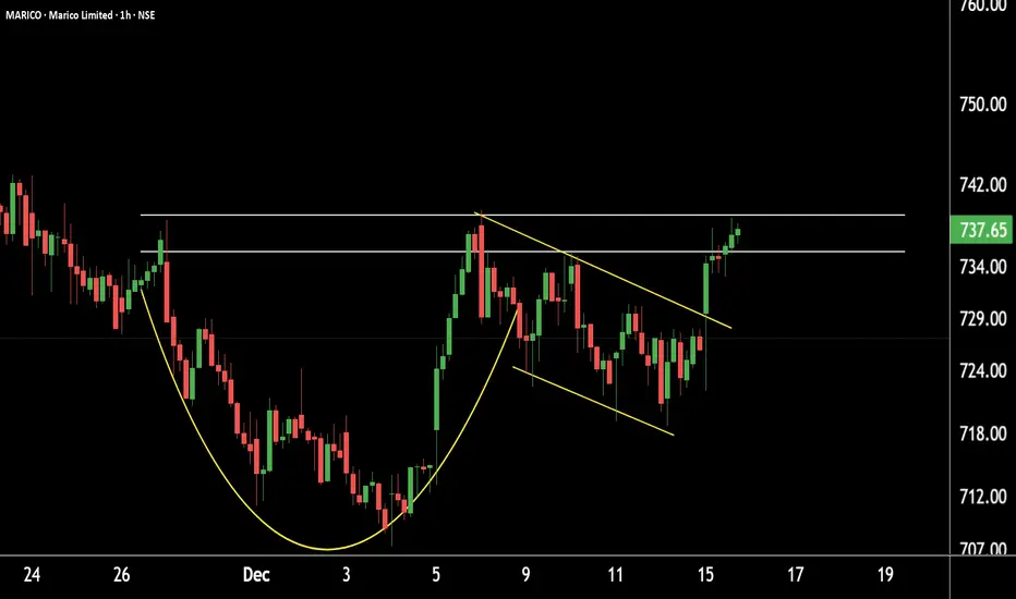 MARICO is forming a Cup & Handle pattern on the 1-hour chart and is currently trading near the key resistance zone of 740–745.