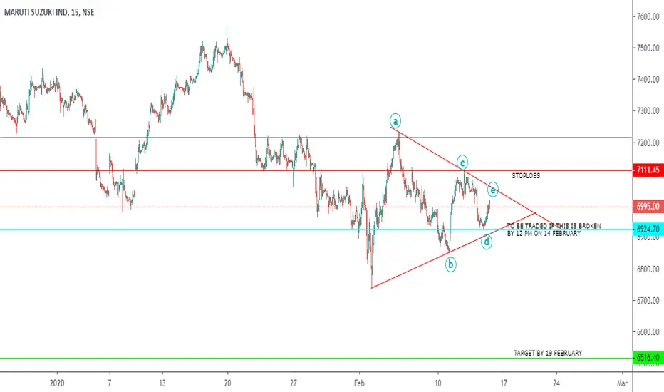 SELL IF 6924 IS BROKEN BY 12PM ON 14 FEBRUARY. SL IS 7110 AND TARGET IF 6500. TARGET SHOULD BE ACHIEVED BY 19 FEBRUARY