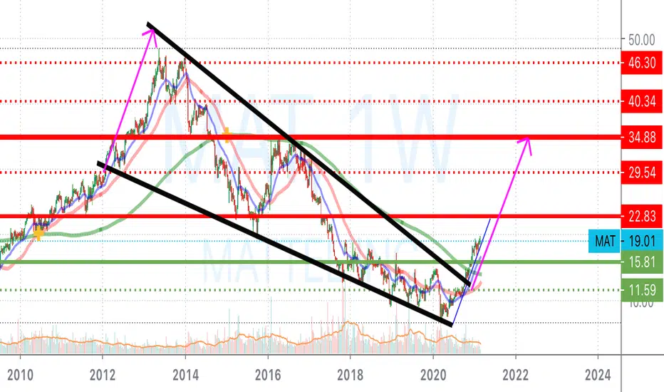 MAT- Alpha signal for MAT in flow algo. Recent bullish catalysts to include but ratings and increased price targets. Broke a multi year falling wedge and has been in an upward channel since. 2023 leap call options are relatively cheap.