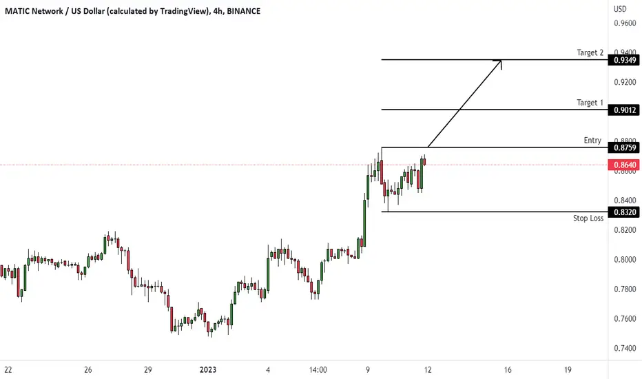 The market is in an uptrend and we are waiting for an entry signal to go LONG above the 0.876 resistance level. Only the downward break of 0.832 would cancel the bullish scenario.