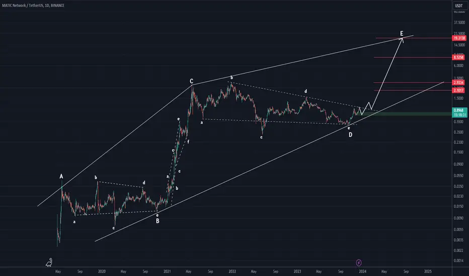 We seem to be in a large diametric whose wave D is coming to an end. This wave D looks like a triangle. Upon further investigation, we can see that we are now in wave e of d.