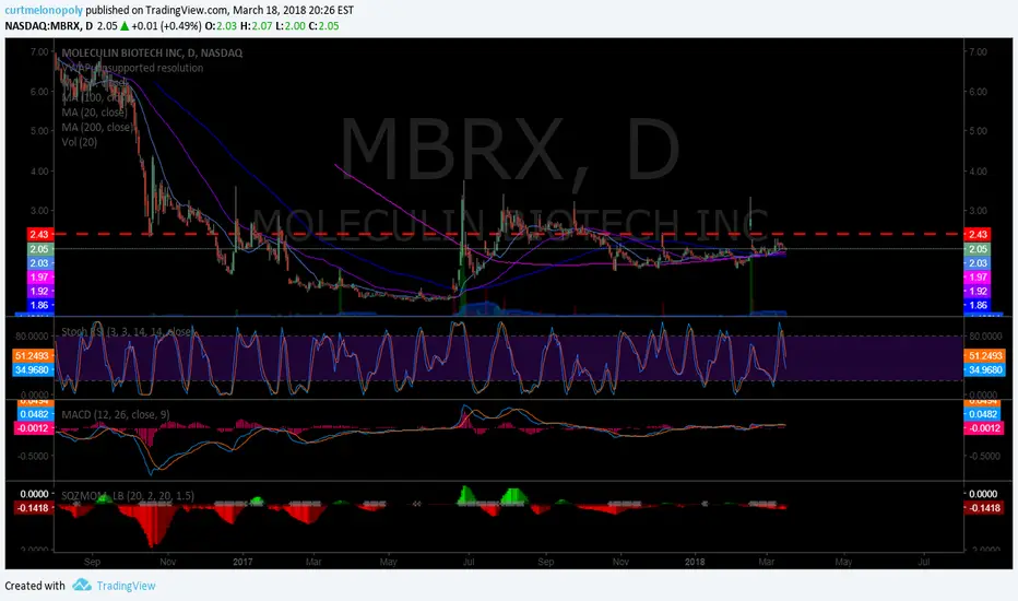 $MBRX has an obvious pivot region in the 2.43 area of the chart.