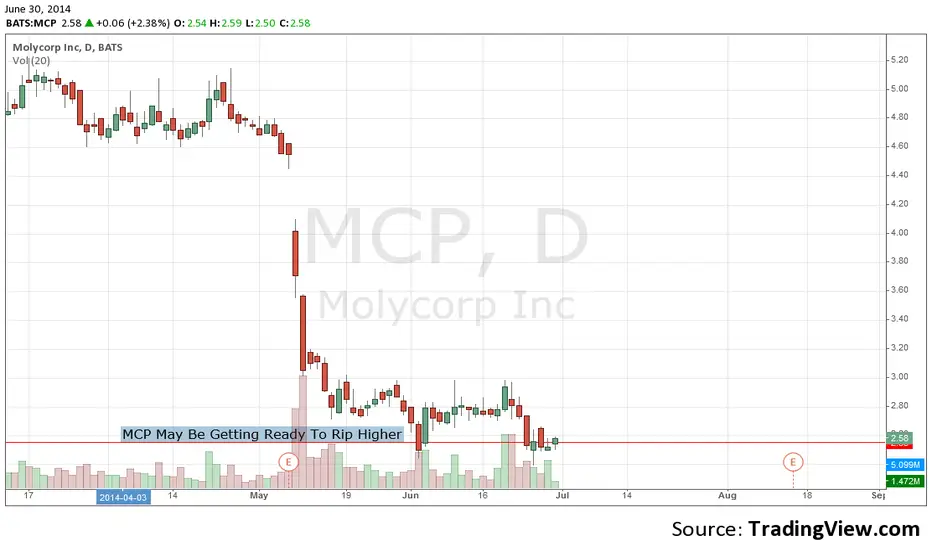 Molycorp Inc (NYSE:MCP) is trading at 52 week lows and hated by most investors for its poor performance. While the markets trade near all time highs, this stock has fallen throughout 2014. That may be about to change. Commodity stocks in all sectors have started to catch a big bid. Look at stocks like ConocoPhillips (NYSE:COP) in the oil sector or Freeport-McMoRan Copper & Gold Inc. (NYSE:FCX) in the copper and gold sector. They are all taking off to the upside. One of the few commodity sectors that has not started to run is rare earth mineral plays. This is the bread and butter for Molycorp Inc. At a current price of $2.55, it is priced at almost bankruptcy levels. This can be looked at as a high risk but also very high reward play. Commodities are hot and likely to get hotter.