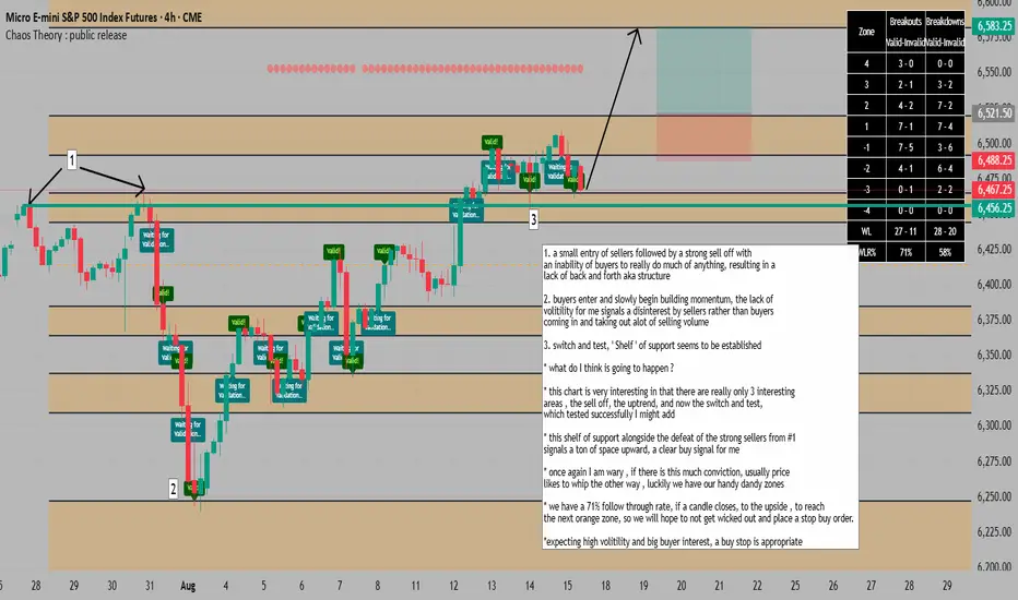 * we have a 71% follow through rate using the chaos theory indicator, if a candle closes, to the upside , to reach the next orange zone, so we will hope to not get wicked out and place a stop buy order.