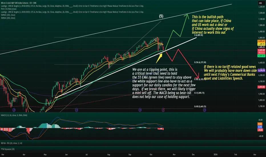 Right now, ES is coiling around the 55EMA, which is the kind of tension point where volatility can explode.