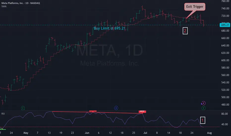 Entry Trigger - RSI has cross below oversold region, enter limit buy at close price