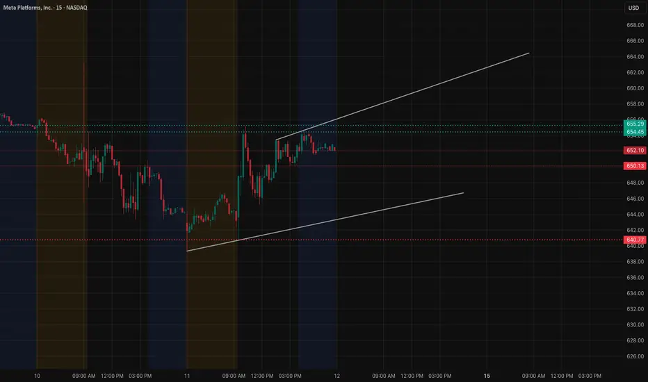 The lower boundary of the channel sits around 648–650, which held as the intraday demand zone multiple times today. Every pullback into this area was absorbed quickly, showing that buyers are still active as long as META stays above this pivot.