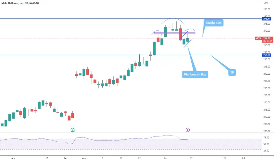 Big rejection a couple of days ago (big fat red candle) price is retesting but I don't think is going to break up. Most likely to be rejected again. Is extremely risky bc this is big tech, you know how they are.