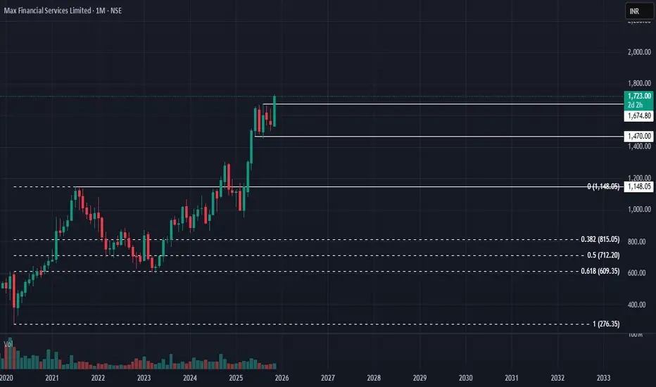 Earlier, MFSL had given a rounding bottom breakout at 1148, with a target of ~545 points, which got fully achieved today.