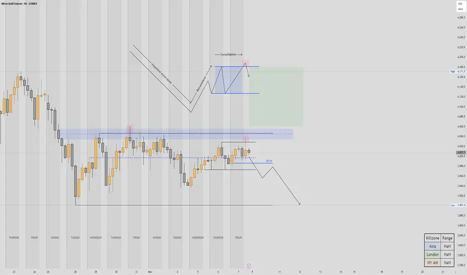 Though, it's been consolidating for the last two weeks, and as far as the structure of the consolidation, some of the liquidity has been taken from the daily FVG on Oct the 30th, leaving a permanent high on the H4 chart with a nice bearish candle