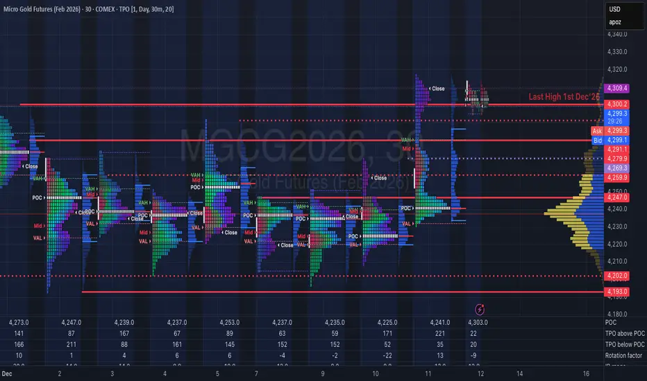 The Setup: If Gold can hold and build acceptance above 4300, it confirms the breakout. We expect the auction to establish a new balance area here before making the final rotation toward the ATH.