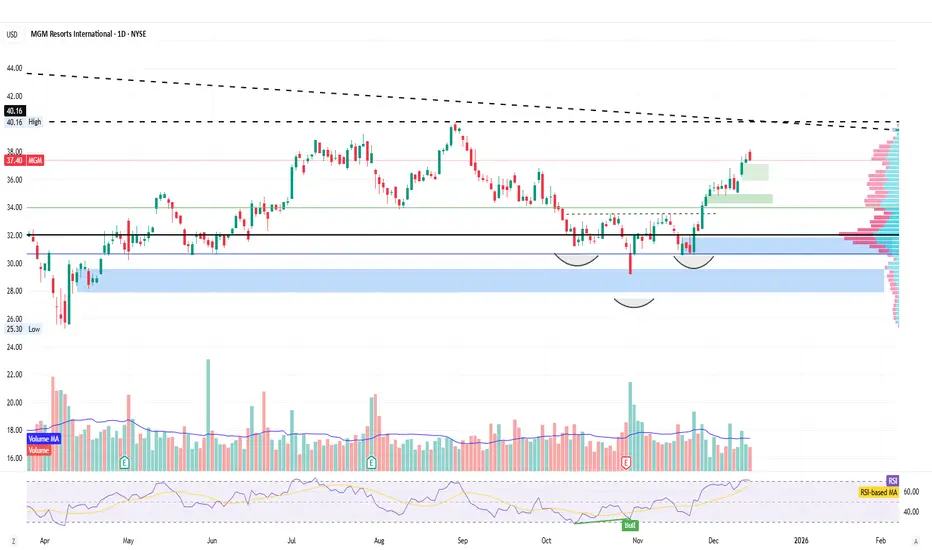 MGM resource international looks bullish. making inverse H&S on previous demand zone. Neckline broken already, 200 ema reclaimed.