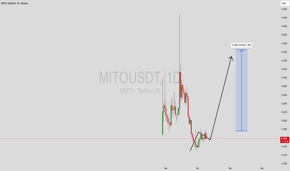 The volume looks solid, confirming that this uptrend is supported by active market participation rather than short-term volatility. Technical indicators suggest that if the current bullish momentum continues, MITOUSDT could potentially deliver a **gain of 90% to 100%+** in the coming sessions. The coin’s chart structure is forming higher highs and higher lows, which is a classic confirmation of sustained bullish momentum in play.