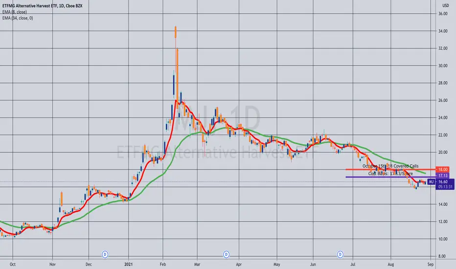 Notes: Waited a little bit after taking assignment of shares (See Post Below) to sell calls against. Here, selling the strike at which my short puts were originally. Cost basis/break even is now 17.13/share, so my current profit potential is the short call strike (18.00) minus my cost basis (17.13) or .87 ($87)/one lot. Still have September 16 short puts on as well.