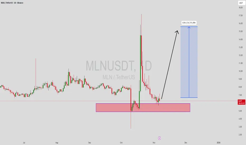 MLNUSDT is forming a clear bullish wave pattern, a dynamic Elliott impulse signal that points to building upward momentum in the DeFi asset management space. Trading around $6.20 USDT with a $19 million market cap, the token has traced higher lows and accelerating swings since its October base near $5.00, capping a mild 8% correction amid broader altcoin digestion. With good volume averaging $15 million daily, up 20% week-over-week, this setup confirms accumulation as buyers stack positions, eyeing a breakout above $6.50 resistance for the next wave leg—projecting 90% to 100%+ gains to $12.00+, a repeat of its 180% summer rally.