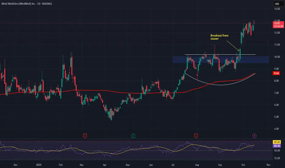 MNMD is aligning technical setup with strong fundamental and macro tailwinds. This makes it a name to watch closely in the psychedelic biotech space.