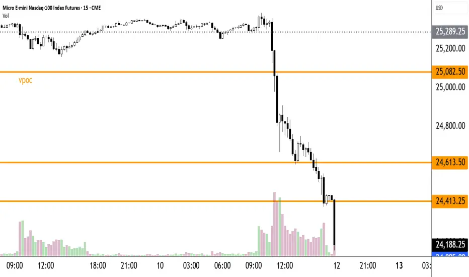 The dark orange lines on my charts are vpocs. If you're not familiar with them learn about them and have them as a key part of your strategy. They are very powerful px magnets, places where buyers and sellers have met in the past and therefore very likely to meet again. Think strong support. Watch and wait for a good bounce on a strong support. Be patient. It will happen and you will be locked and loaded.
