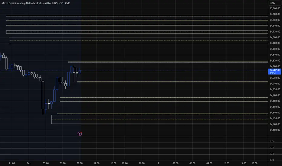 10/1/25 - These are the target areas - NQ price for Market open depending if price moves up or down. Will look for trades into these areas.