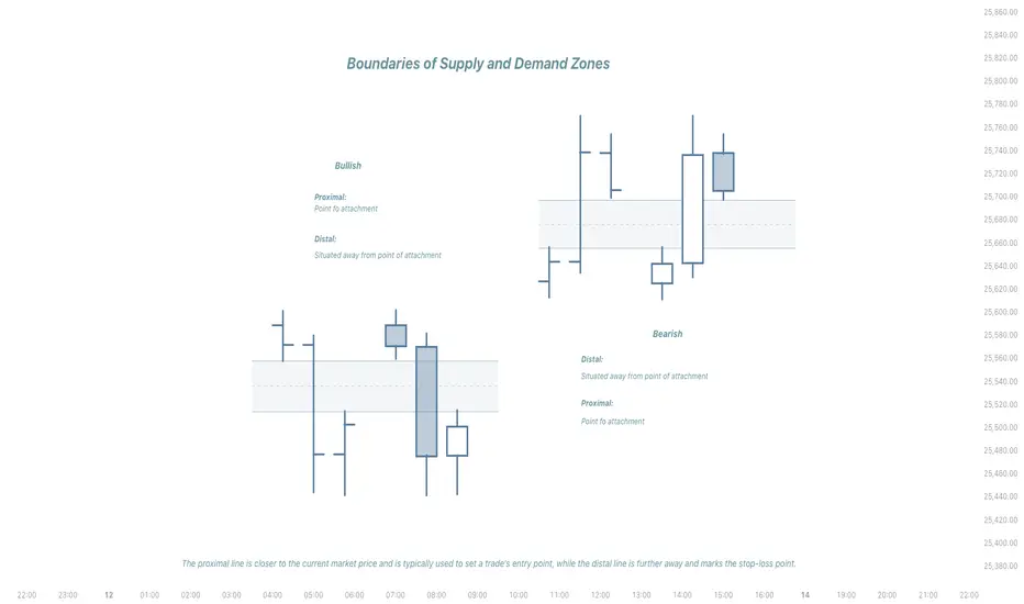 Proximal and distal refer to lines that define the boundaries of supply and demand zones.