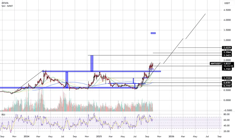 MNT is in a confirmed breakout from a multi-year resistance structure. As long as price holds above $1.71, the bullish trend remains intact with targets at $2.24 → $2.50 → $2.62 → $3.50+.