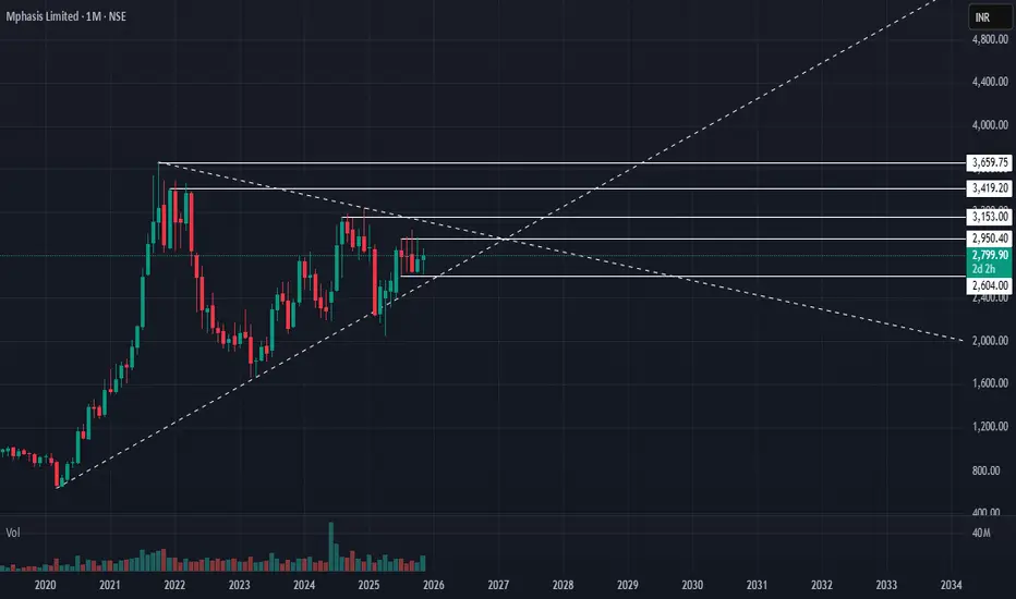Mphasis has been consolidating sideways for 5 months, holding strong support around ₹2600.