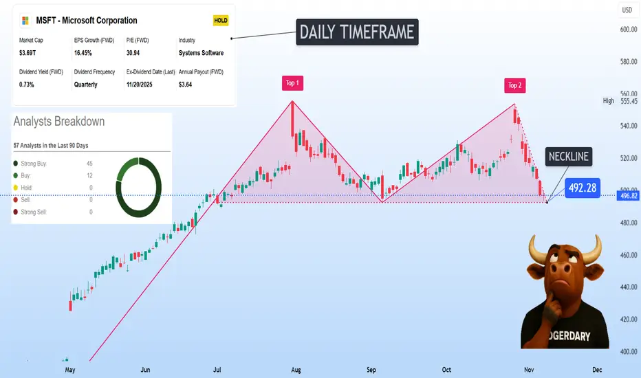 MSFT has formed a textbook double-top pattern on the daily chart, a sign that the recent rally may be losing steam.