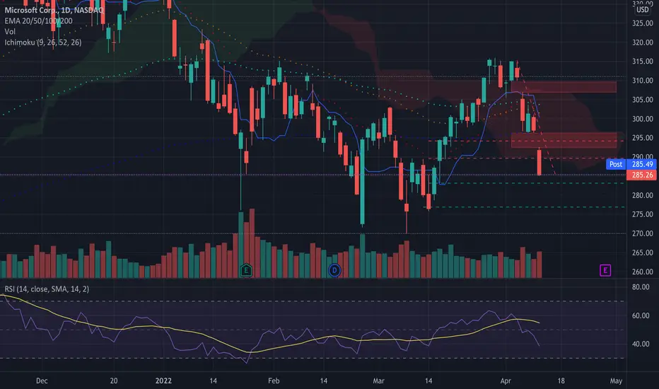 Since bouncing up to create the most recent lower high, Microsoft has suffered a steep sell-off, falling almost 10% lower to reach a low-of-day at the $285.32 mark on Monday.