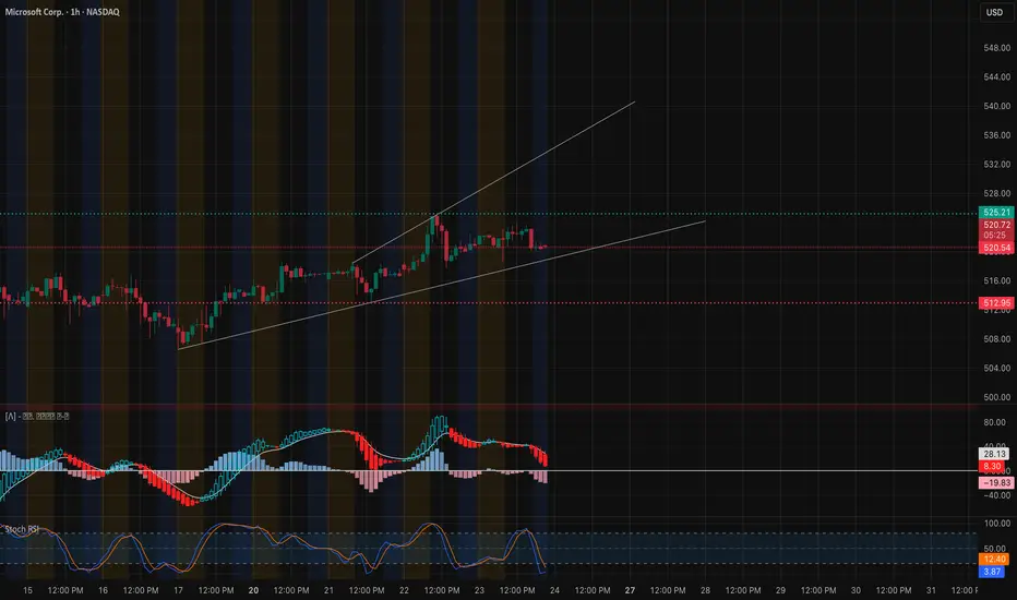 Overall structure suggests that MSFT is in mid-cycle consolidation. Bulls need to push through $525 to regain dominance, while bears will likely press if $518 fails.