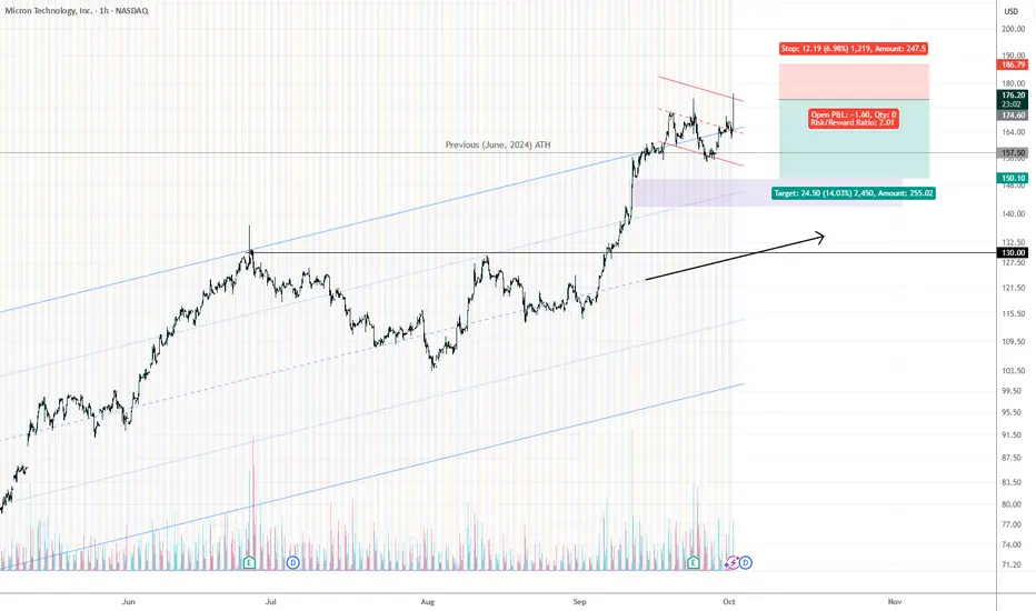 MU — Short: overbought → fade back into the channel