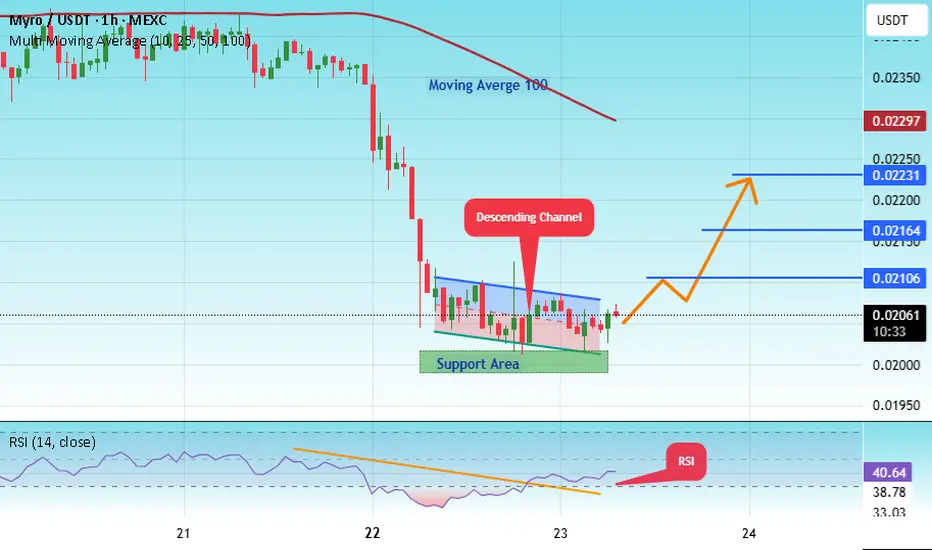 There is a major support area in green at 0.02000, which represents a strong support point.
