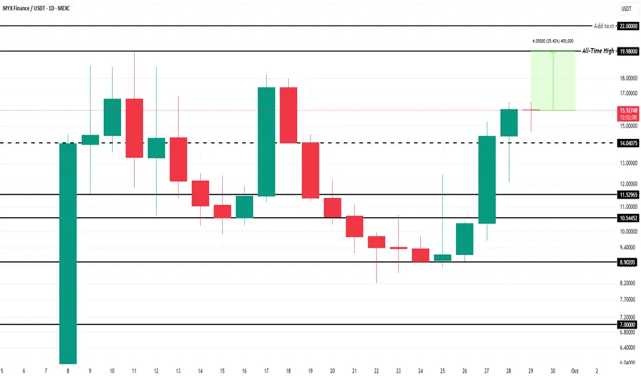MYX appears ready to aim for a new high, sitting 25.4% away from its next resistance. The altcoin has secured $14.04 as a strong support level, giving investors confidence that upward momentum could continue if broader market conditions align with bullish sentiment.