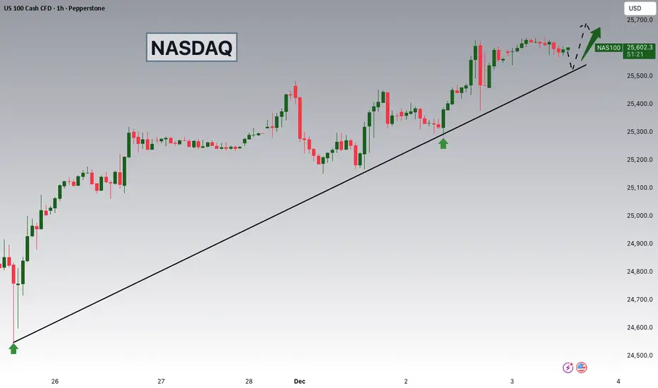 Hey Traders, in today's trading session we are monitoring NAS100 for a buying opportunity around 25,520 zone, NASDAQ is trading in an uptrend and currently is in a correction phase in which it is approaching the trend at 25,520 support and resistance area.