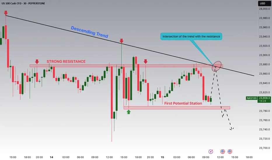 Hey Traders, in today's trading session we are monitoring NAS100 for a selling opportunity around 23,875 zone, NASDAQ is trading in a downtrend and currently is in a correction phase in which it is approaching the trend at 23.875 support and resistance area.