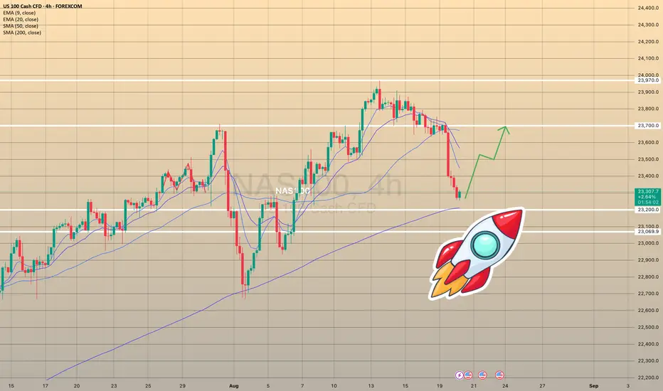 NAS100 dropped on 1.32% on August 19 as market participants are waiting for Powell's key rate comments