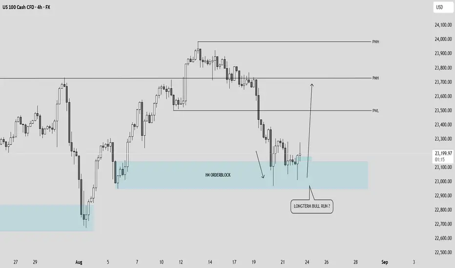Price this week was very bullish until today FRIDAY. AS you can see price reached the psychological area of 23.000. Currently, price action seems to reject and print pin bars at the H4 ORDERBLOCK. This is a make-or-break area.