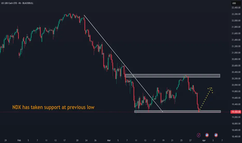 NDX has taken support at previous low. It may retrace from this support.