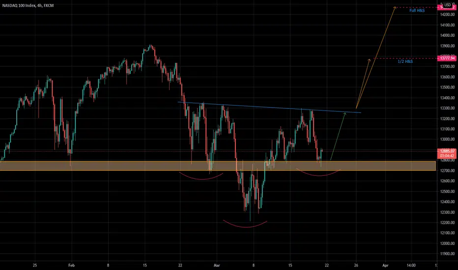 Long term: wait for break and retest of neckline for long entry. Half and full H&S targets noted on graph.