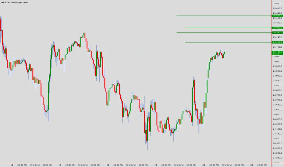 NAS100 is coiled like a spring at 25,130. The technical evidence suggests accumulation is wrapping up, with multiple methodologies pointing toward upside resolution. The 25,190 breakout level is your line in the sand—above it, the path opens to 25,400+. Below 25,080 invalidates the immediate bullish setup.