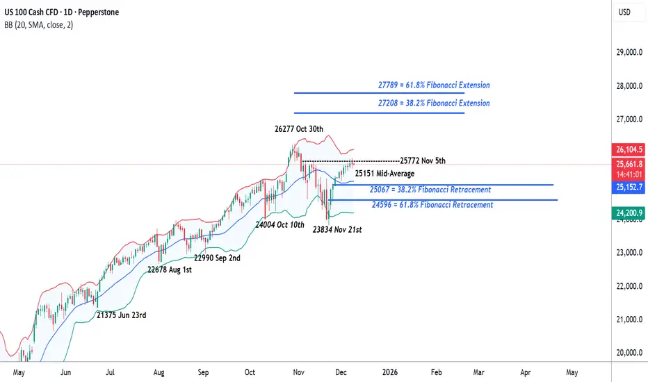 More specifically, the US 100 is up around 21.5% year to date and consideration may need to be given to how motivated investors may be to add to their directional exposure versus locking in gains on what has been a strong 2025 performance.