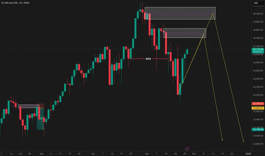 NAS100 1D - For those of you who like to trade this CFD, I am wanting to see price continue trading us lower as the Dollar weakens over the course of the next month or so.
