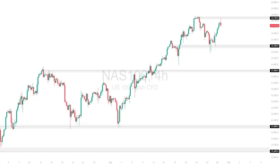 After a strong recovery from 24,300, NAS100 pushed higher but is now facing rejection at the 24,750 resistance zone. The index is holding above short-term structure but has yet to clear this key barrier.