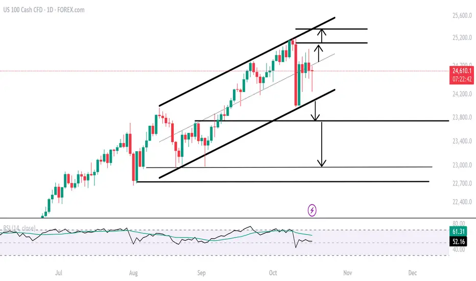 On the upside, if the Nasdaq manages to hold above 24,000 and, more importantly, close above 24,800 — the mid-zone of the ascending channel respected since August 2025 — prices could advance toward the upper boundary, aligning with levels 25,000 and 25,300, marking new record highs.