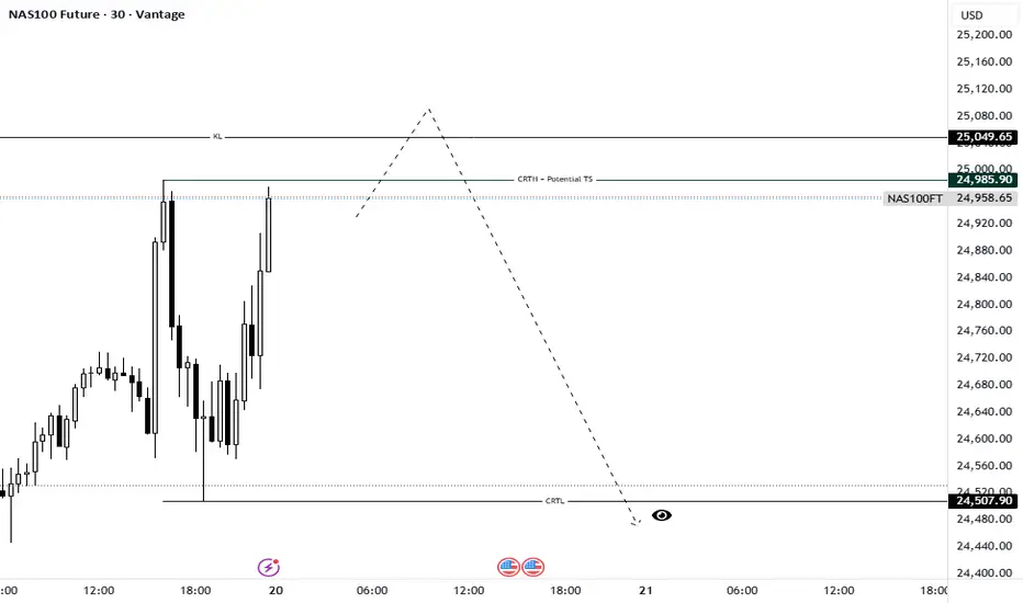 The Trap Zone: The level at 24,985.90 is marked as the CRTH (Candle Range Theory High) and our "Potential TS" line. This is where most early breakout traders will place their buy stops, or where swing traders will look to enter short.