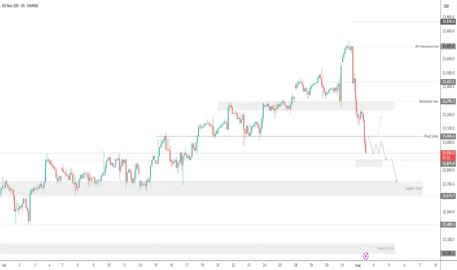 If the price breaks below 22875, the decline is likely to extend toward 22710, with a deeper support zone at 22615.