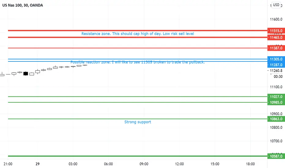 I will only trade the long if 11305 breaks, targeting 11387, 11465. 11465-11515 is a zone of lots of resistance. I expect rejection from there.
