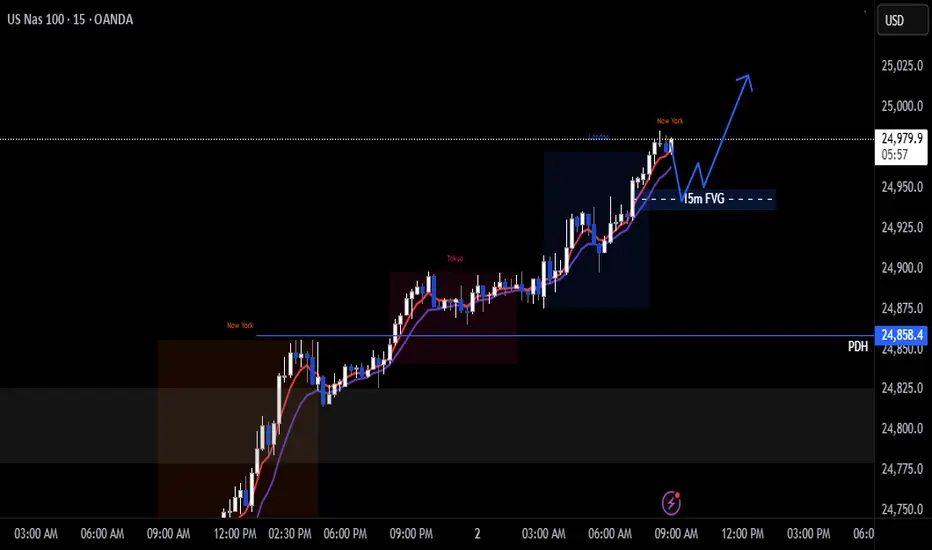 Price is in a strong bullish trend and trading at ATH above the PDH so i will look for buys from the 15m FVG to continue higher