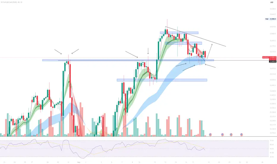 Unfortunately it looks like the previous all time highs were not respected as of today's open. Let's see if we can get a support dip buy opportunity at the 23,500 key levels from 8/12/25! Overall sentiment on the market is still bullish long term, but lets be patient and see where the sellers stop making lows and then start looking for higher highs and higher lows.Disclaimer