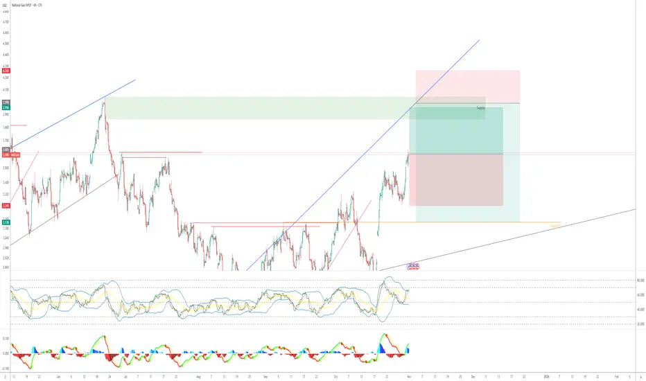 My previous analysis for NATGAS didn't very well catch the upper channel. I have adjusted the upper current channel of NATGAS according to the CHOC that happened on the 4Hr on 28 AUG 2025. Thus, my currently 2 weeks plan is to target the upper channel with correction to the current support level at 3.138 near the lower channel.