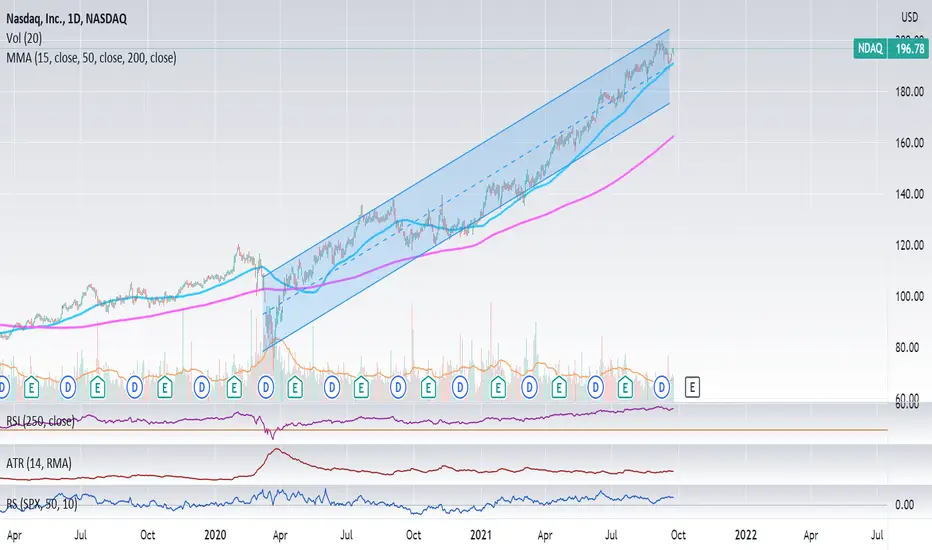 In opposition to SPY and DJI, NDAQ still within the 1 year channel.