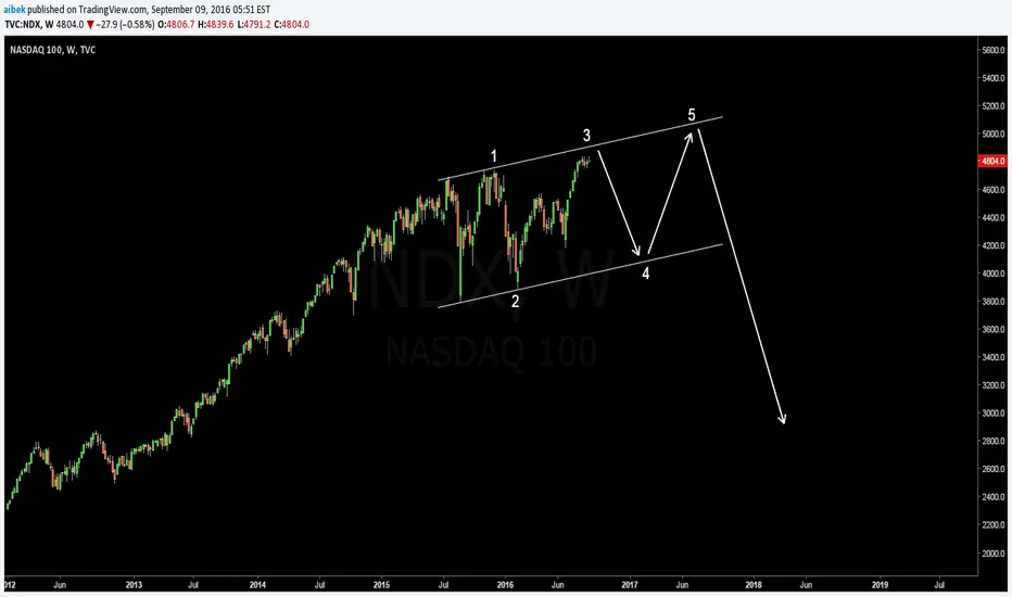 The 3-wave structure points at the shaping giant ending diagonal in Nasdaq 100.